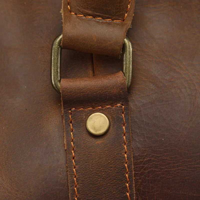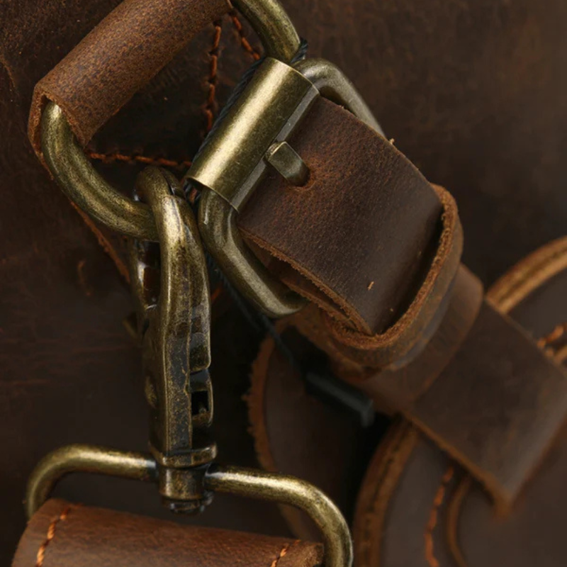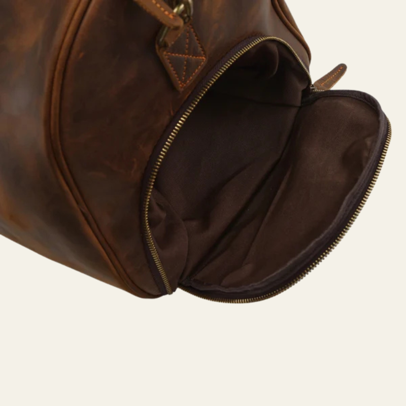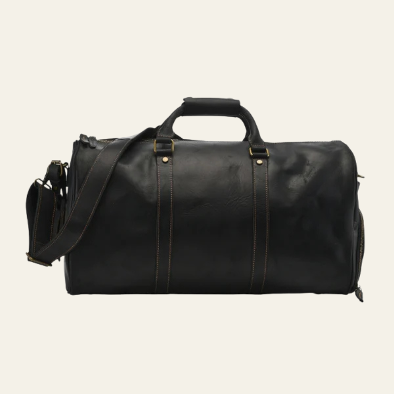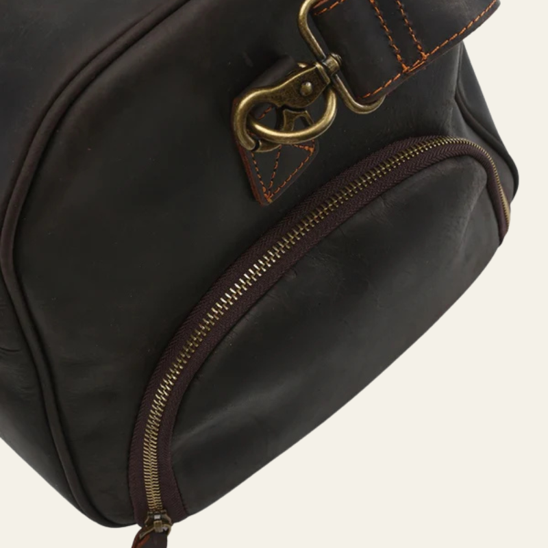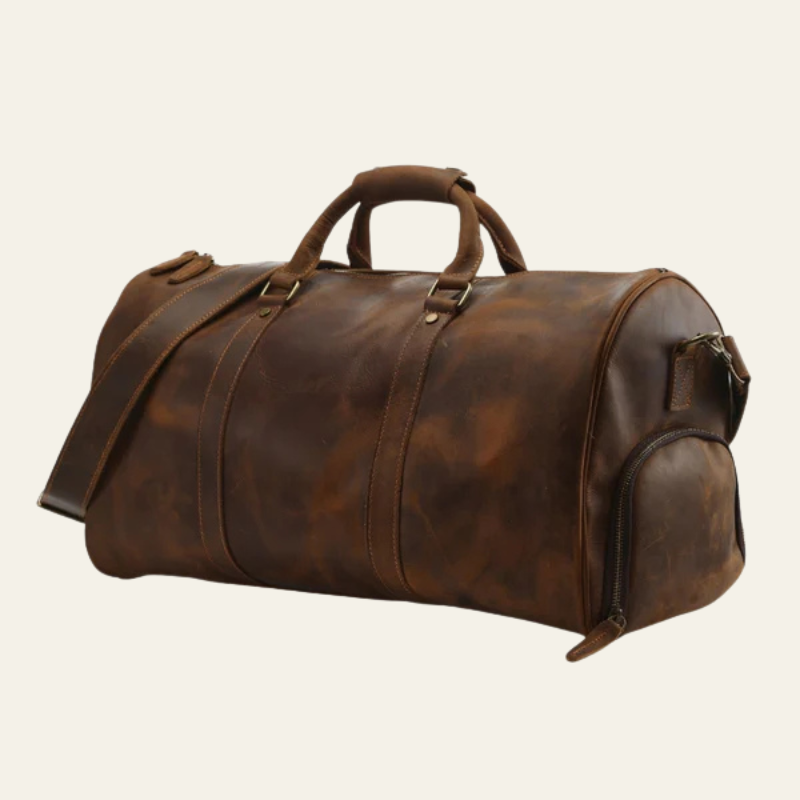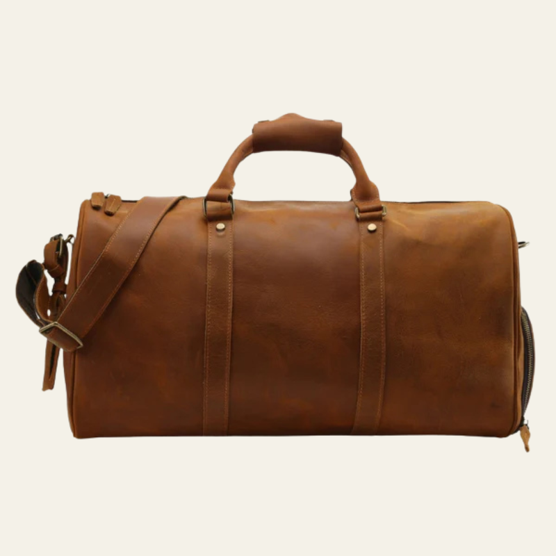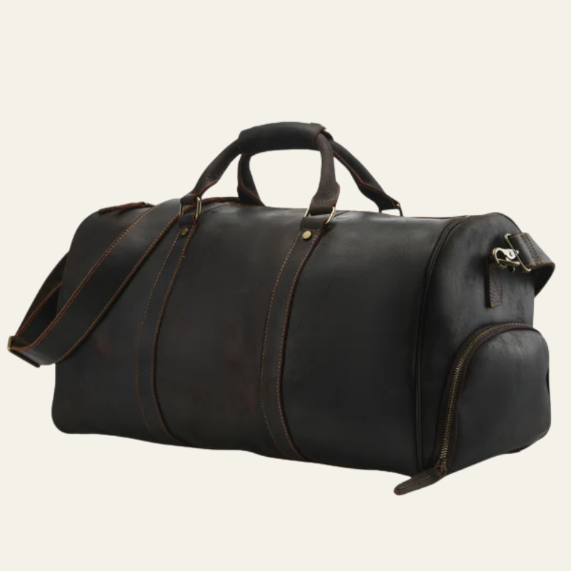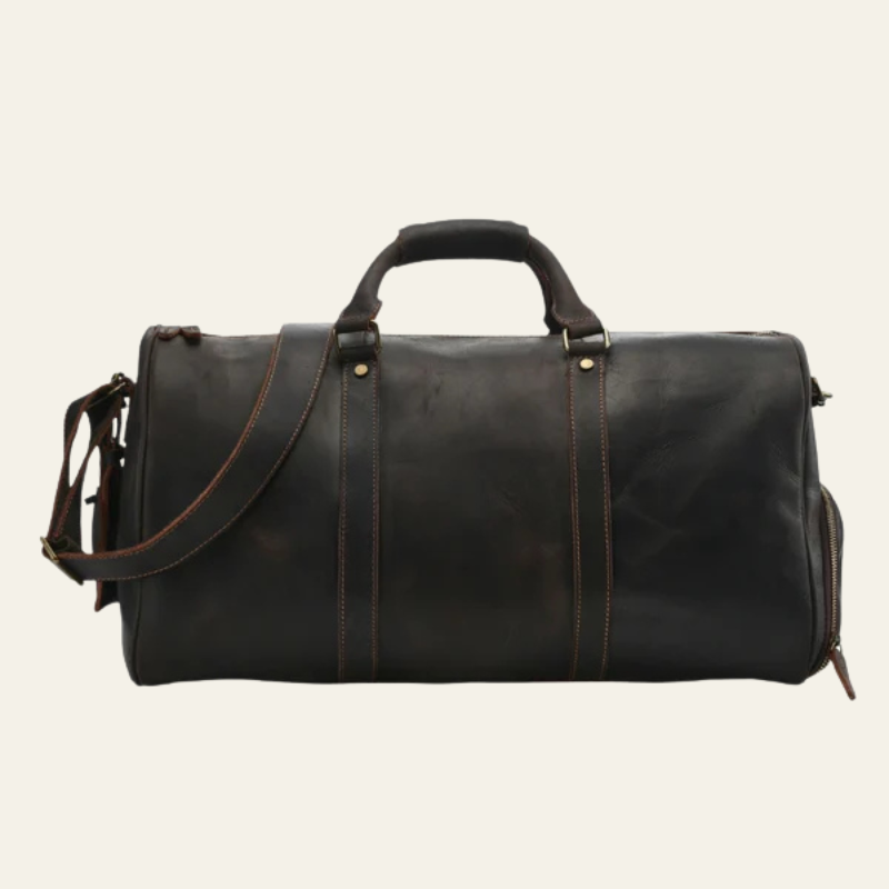 This men’s weekender bag in full leather embodies heritage elegance with a modern, functional edge.