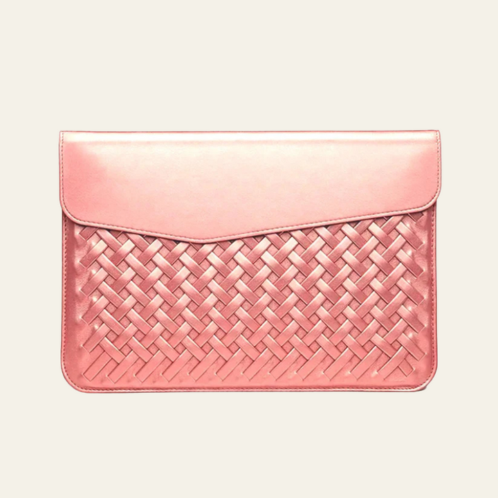A women’s laptop clutch in woven design, balancing modern practicality with timeless European sophistication. Expertly crafted with sleek texture and refined structure, it delivers quiet luxury with every detail. Perfect for business meetings, evening occasions, or travel with understated elegance.