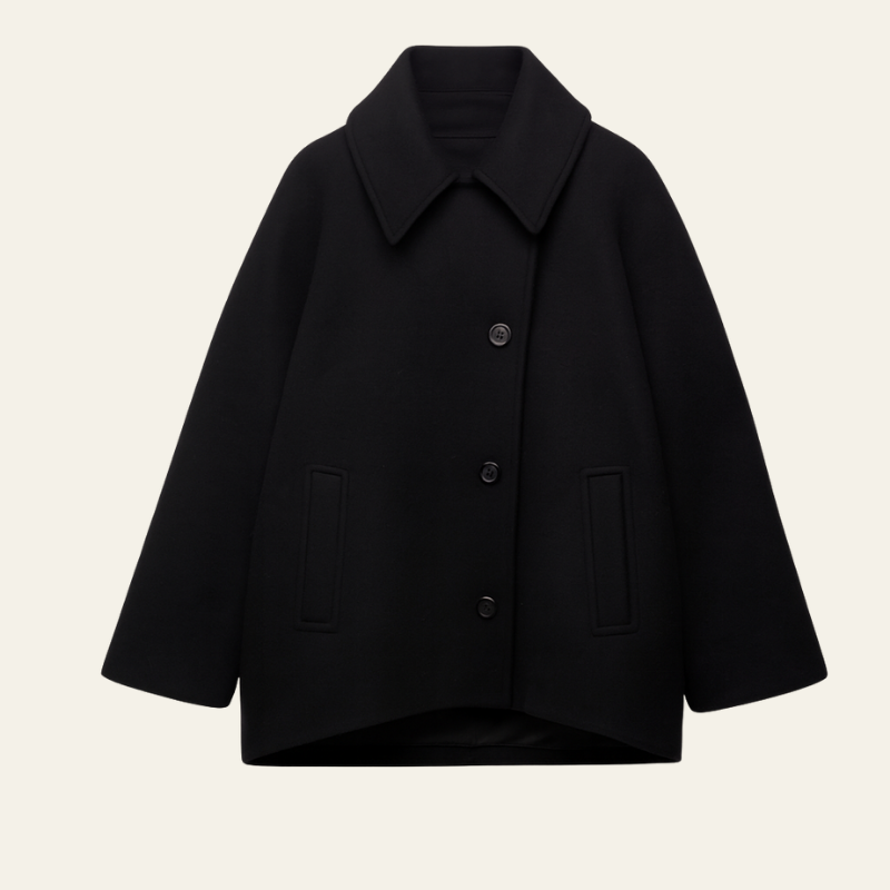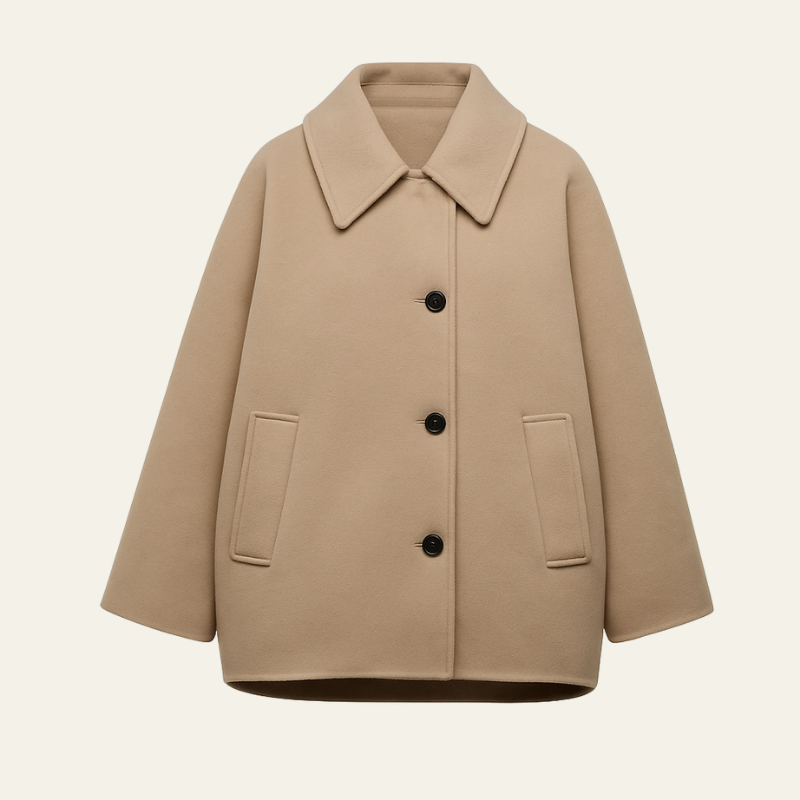 A women’s wool car coat crafted for timeless European elegance and understated sophistication. Designed with clean tailoring, a softly structured drape, and classic button fastening, it offers both refinement and versatile wearability. Perfect for autumn weekends or styled over tailored separates for polished city commutes.