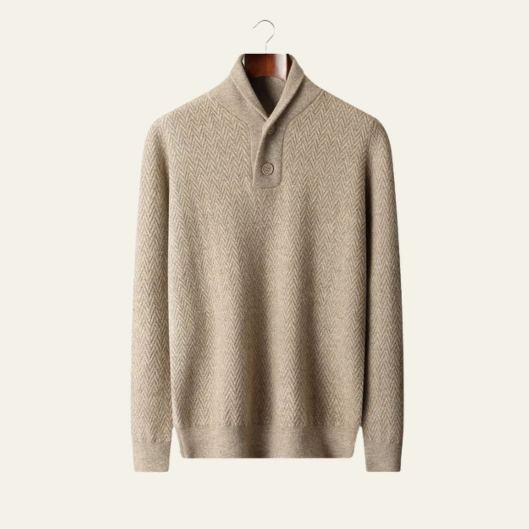 A men’s cashmere zigzag button sweater crafted for alpine elegance and year-round versatility. Knitted from cashmere and extra-fine merino wool, it offers a buttery-soft touch, natural insulation, and a distinctive textured pattern for quiet sophistication. Perfect for winter layering in the mountains or evening aperitifs by the coast.