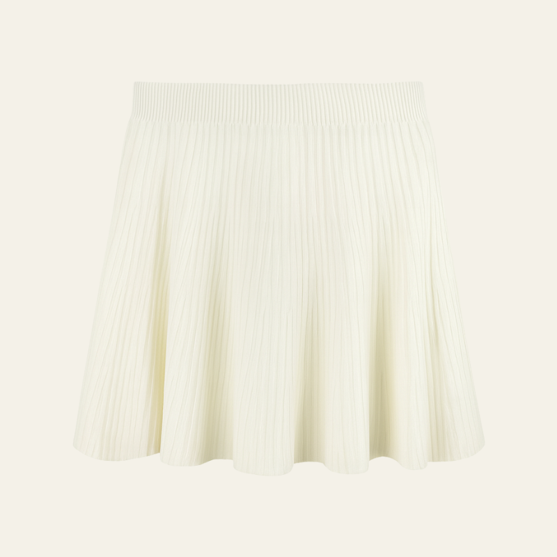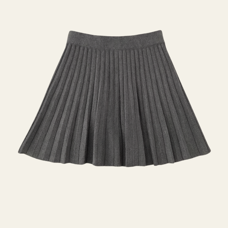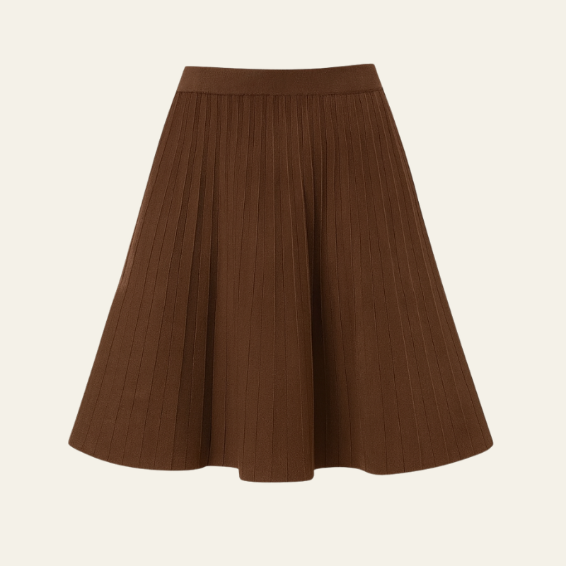 This women’s pleated knit skirt blends heritage charm with modern refinement.