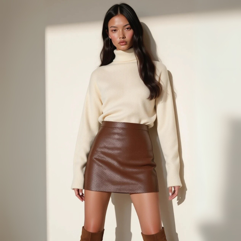 A women’s leather mini skirt crafted for timeless European elegance and modern allure. With a softly structured silhouette and refined texture, it offers both sophistication and edge. Perfect for autumn weekends or styled with a cashmere knit for evening aperitifs.