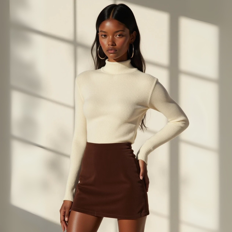 A women’s skirt designed with minimalist precision and versatile elegance. Crafted in a rich brown hue, it balances refined structure with effortless wearability. Pair it with knits or blazers for a timeless, elevated look.