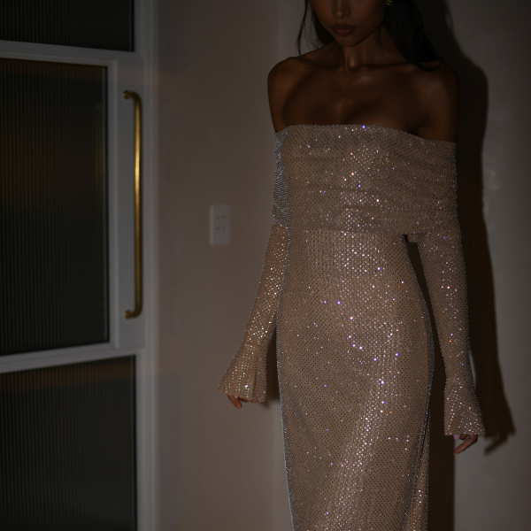 The Lisbon Off-Shoulder Evening Maxi Dress