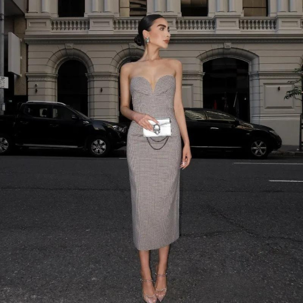 A women’s strapless evening dress crafted for timeless European elegance and discreet sophistication. Featuring a sculpted sweetheart neckline and a tailored silhouette, it offers refined femininity with modern allure. Perfect for black-tie gatherings or styled with heels for city soirées.