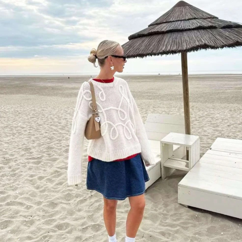 Soft knit with sculptural detailing adds texture and understated luxury.